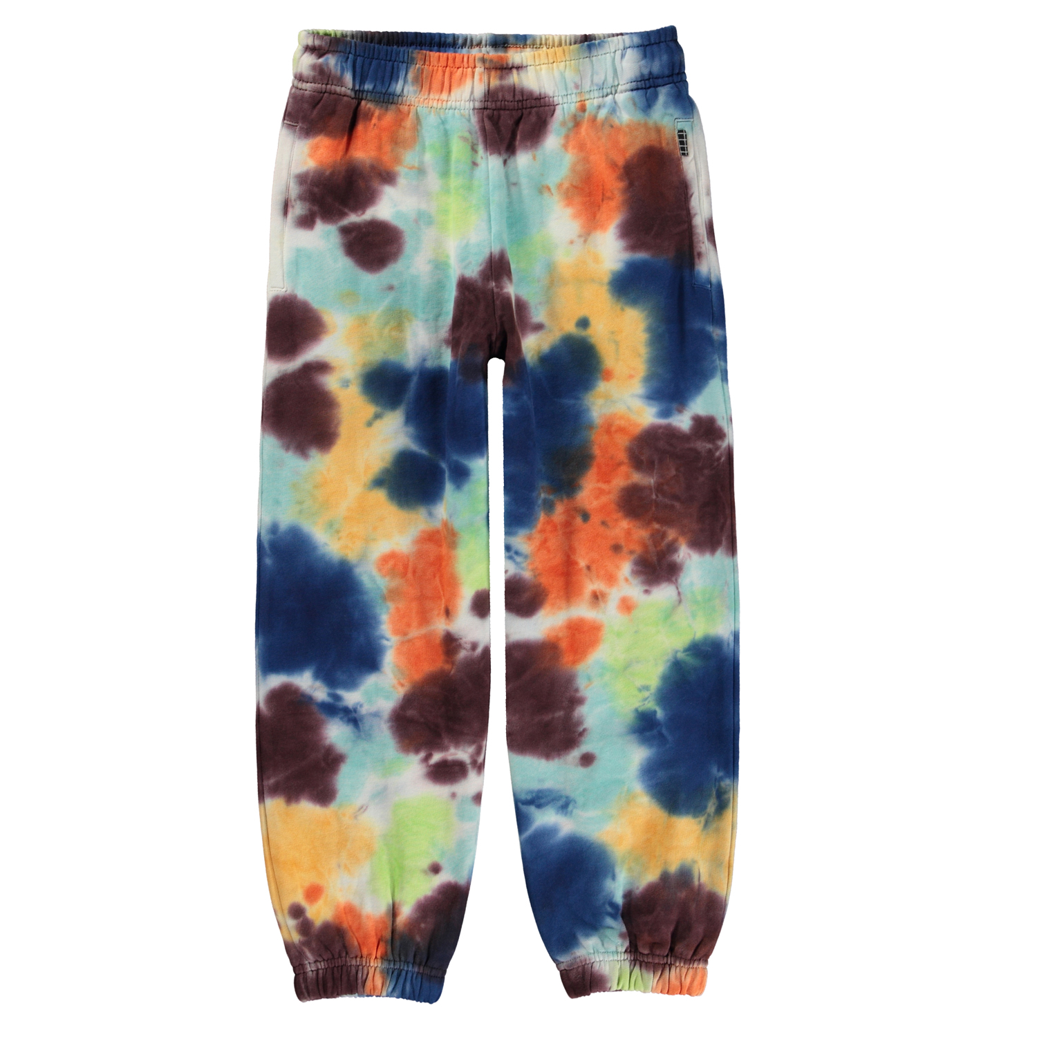 Multifarvede sweatpants med tie-dye print. Disse bukser er fremstillet i 100% bomuld, har elastik og indvendigt bindebånd i taljen, elastik ved ankler, lommer i siden og en baglomme. Bukserne har et regulært fit.