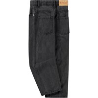 Mørkegrå jeans i økologisk bomuld med 5 lommer, brede ben og gylp med lynlås. Disse bukser er inspireret af skatermiljøet og har en løs pasform.