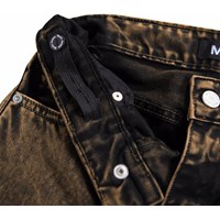 Denimjeans lavet i økologisk bomuld med en sort og rød vask. Bukserne 5 lommer og en bred pasform, med inspiration hentet fra skatermiljøet.