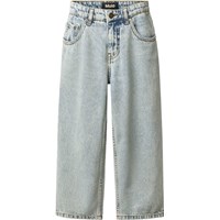 Lyseblå jeans i økologisk bomuldsdenim. Jeansene har 5 lommer, lige ben, lynlåsgylp og løs pasform med justerbar elastik i taljen. Mindste størrelser (92–134) har trykknap, mens str. 140–176 har klassisk jeansknap.