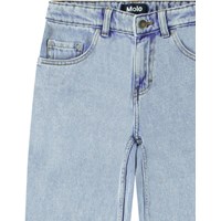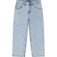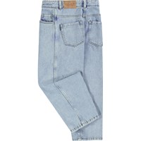 Lyseblå jeans i økologisk bomuld med 5 lommer, lige ben og gylp med lynlås. Disse bukser er inspireret af skatermiljøet og har en løs pasform.
