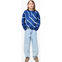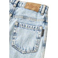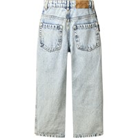 Lyseblå jeans i økologisk bomuldsdenim. Jeansene har 5 lommer, lige ben, lynlåsgylp og løs pasform med justerbar elastik i taljen. Mindste størrelser (92–134) har trykknap, mens str. 140–176 har klassisk jeansknap.