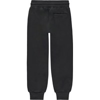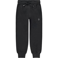 Alvar er et par sporty sweatpants i sort med broderie af en lille smiley ved den ene lomme foran. Bukserne har en bred, elastisk talje og lynlåslommer.