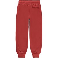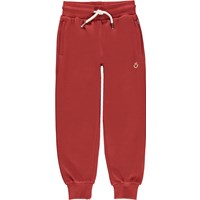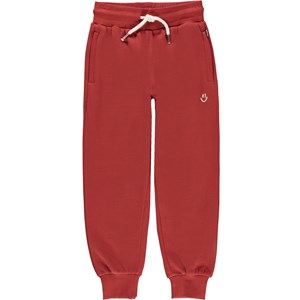 Alvar er et par sporty sweatpants i rød med med print af en lille smiley ved den ene lomme foran. Bukserne har en bred, elastisk talje og lynlåslommer.