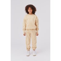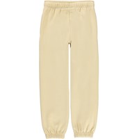 Am er et par lysegule unisex sweatpants med elastik ved anklen og i taljen og et logo patch i venstre side. Bukserne har lommer fortil, og en enkelt påsyet baglomme.