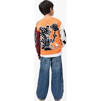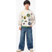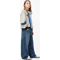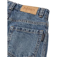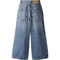Blå denimjeans i økologisk bomuld med et cool, skaterinspireret look. Bukserne har klassisk 5-lommedesign og en bred, afslappet pasform, perfekt til aktive dage med masser af bevægelse. Taljen kan justeres med en indvendig elastik, så jeansene sidder godt på alle børn. De mindste størrelser (92-134) har en praktisk trykknap, mens størrelser 140-176 er udstyret med en klassisk jeansknap.