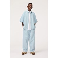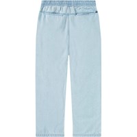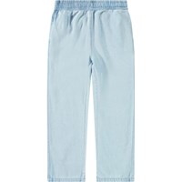 Lyseblå denimbukser, fremstillet i økologisk bomuld. Disse bukser har lommer i siderne, baglommer, en elastisk talje med indvendigt bindebånd, som gør at de sidder godt hele dagen og er behagelige at have på. Aster har en almindelig pasform