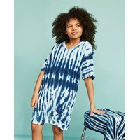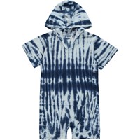 Mason er en blå tie-dye dragt i froté med hætte, korte ærmer og ben. Dragten er perfekt til stranden efter en tur i vandet.