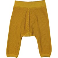 Samantha er et par gule baby bukser i vaflet økologisk bomuld. Bukserne har en elastisk talje, som sikrer en behagelig pasform.