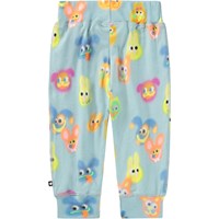 Blå bukser med sjovt print til de mindste. Bukserne har en bred, elastisk ribkant i taljen og ved benene, som sikrer en god og behagelig pasform. De er bløde og fleksible med masser af plads til bevægelse.