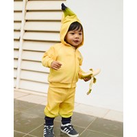 Bløde bukser i økologisk bomuld til de mindste. Bukserne har elastik i taljen og er gule med sorte detaljer som en banan. For et komplet banan-outfit, kombiner med den matchende hoodie.