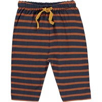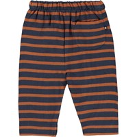 Saxon er et par breton stribede babybukser i blå med brune striber. Bukserne har brede ben og bindebånd i taljen. Kombiner med matchende top.