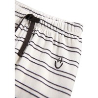 Brun og råhvid stribet bukser i til de mindste, fremstillet i økologisk bomuld. Bukserne har en løs pasform med en baglomme samt en elastik og snøre i taljen, der gør dem nemme at tage af og på. Det lette og luftige design sikrer masser af bevægelsesfrihed, og ved lommen finder du et lille broderet smilende ansigt. Kombiner bukserne med en matchende bluse for et komplet sæt.