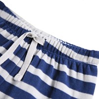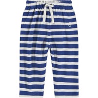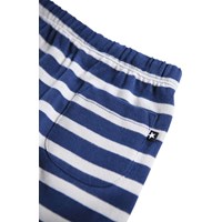 Blå og hvidstribet bukser i til de mindste, fremstillet i økologisk bomuld. Bukserne har en løs pasform med en baglomme samt en elastik og snøre i taljen, der gør dem nemme at tage af og på. Det lette og luftige design sikrer masser af bevægelsesfrihed, og ved lommen finder du et lille broderet smilende ansigt. Kombiner bukserne med en matchende bluse for et komplet sæt.