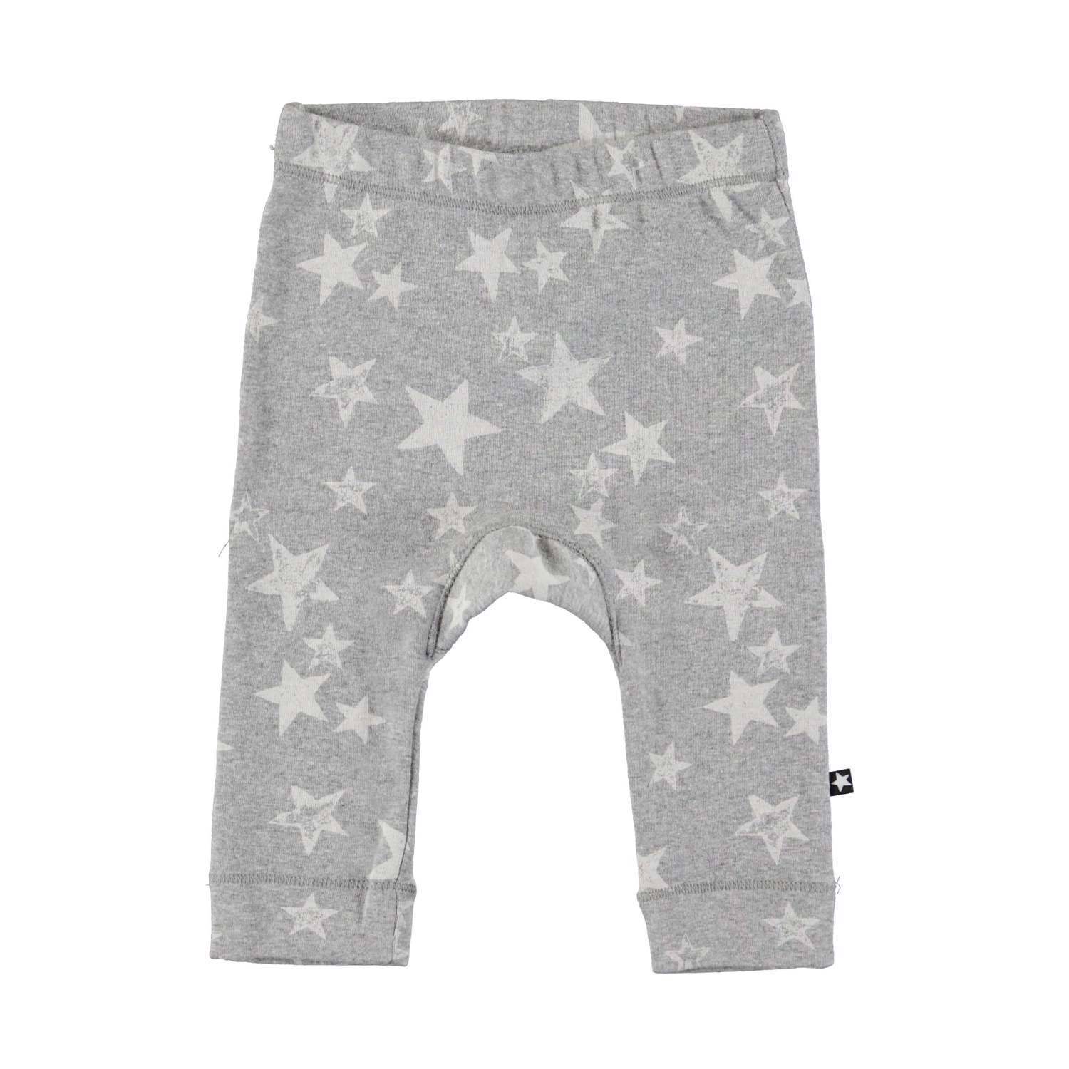 Seb er et par grå babybukser med hvide stjerner. Seb har smalle ben og ribkant. Bukserne har elastisk talje, som sikrer et komfortabelt fit. Certificeret af Ecocert Greenlife, certifikationsnummer 197496.