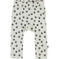 Seb er et par hvide baby bukser med print af sorte hunde poter. Seb har smalle ben og ribkant. Bukserne har elastisk talje, som sikrer et komfortabelt fit. Certificeret af Ecocert Greenlife, certifikationsnr. 197496.