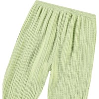 Lysegrønne bukser til de mindste i økologisk vaflet bomuld. Bukserne har en løs pasform samt elastik i taljen og benene, hvilket giver god bevægelsesfrihed til dit barn. Kombiner med en matchende skjorte for et komplet sæt.