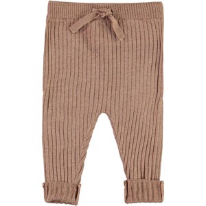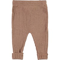 Shadow er et par strikkede baby bukser i brun. Bukserne har bindebånd i livet og ombuk ved bunden af benene.