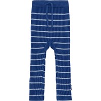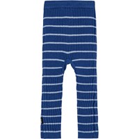 Blå bomuld/uld ribbuks til de mindste med lyseblå striber, lange ben og bindebånd i taljen.