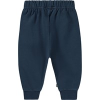 Mørkeblå bukser med placement print til de mindste. Printet består af små, smilenede ansigter i grå, på knæene, fuldkommen klar til ballade. Disse bukser er fremstillet i 100% bomuld, har elastik og gråt bindebånd i taljen og rib ved fødderne. Match evt. bukserne med trøjen, Disc eller Enzi, i samme print for det perfekte sæt.