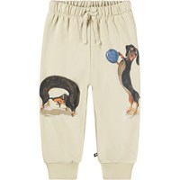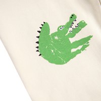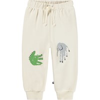 Bløde bukser i økologisk bomuld til de mindste. Bukserne er råhvide med håndprint af farverige dyr. Bukserne har elastik og bindebånd i taljen samt ribkanter ved benene. De er nemme at tage af og på og giver masser af bevægelsesfrihed. Kombinér med matchende sweatshirt for et komplet outfit.