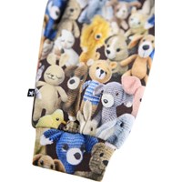 Bløde bukser i økologisk bomuld til de mindste. Bukserne er med print af hæklede dyr. Bukserne har elastik og bindebånd i taljen samt ribkanter ved benene. De er nemme at tage af og på og giver masser af bevægelsesfrihed.