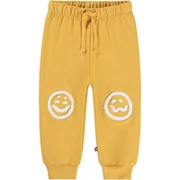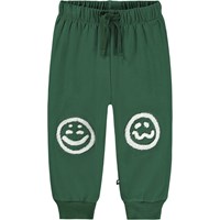 Bløde bukser i økologisk bomuld til de mindste. Bukserne er mørkeblå med bløde hvide ansigter i forskelligt humør på knæene. Bukserne har elastik og bindebånd i taljen samt ribkanter ved benene. De er nemme at tage af og på og giver masser af bevægelsesfrihed. Kombinér med matchende sweatshirt for et komplet outfit.