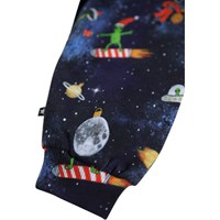 Bløde bukser i økologisk bomuld til de mindste. Bukserne er mørkeblå med print af livet i rummet. Bukserne har elastik og bindebånd i taljen samt ribkanter ved benene. De er nemme at tage af og på og giver masser af bevægelsesfrihed. Kombinér med matchende sweatshirt for et komplet outfit.