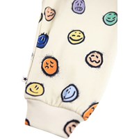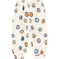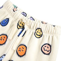 Bløde bukser i økologisk bomuld til de mindste. Bukserne er råhvide med print af farverige ansigter i forskelligt humør. Bukserne har elastik og bindebånd i taljen samt ribkanter ved benene. De er nemme at tage af og på og giver masser af bevægelsesfrihed. Kombinér med matchende sweatshirt for et komplet outfit.