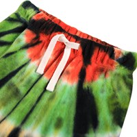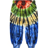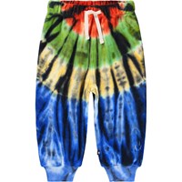 Bløde bukser i økologisk velour til de mindste. Bukserne har et farverigt tie-dye print. Bukserne har elastik og bindebånd i taljen samt ribkanter ved benene. De er nemme at tage af og på og giver masser af bevægelsesfrihed.