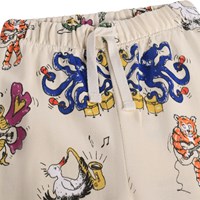 Bløde, beige bukser med musikprint i økologisk bomuld til de mindste. Med elastik og bindebånd i taljen, ribkanter ved benene og en ubørstet inderside.