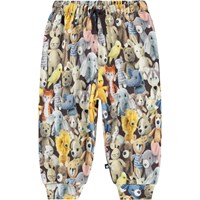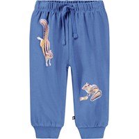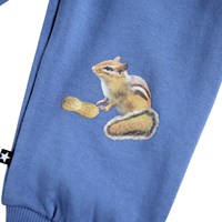 Bløde bukser i økologisk bomuld til de mindste. Bukserne er blå med print af egern. Bukserne har elastik og bindebånd i taljen samt ribkanter ved benene. De er nemme at tage af og på og giver masser af bevægelsesfrihed.