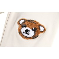 Bløde bukser i økologisk bomuld til de mindste. Bukserne er råhvide med bløde brune bamser på knæene. Bukserne har elastik og bindebånd i taljen samt ribkanter ved benene. De er nemme at tage af og på og giver masser af bevægelsesfrihed. Kombinér med matchende sweatshirt for et komplet outfit.