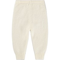 Råhvide bukser til de mindste i en blød uld blandning. Bukserne har en løs pasform med masser af bevægelses frihed samt elastik i taljen, der gør dem nemme at tage af og på. Kombiner bukserne med en matchende cardigan for et komplet sæt.