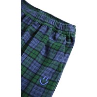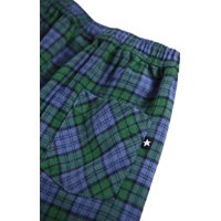 Grøn og blå ternede bukser til de mindste, fremstillet i økologisk bomuld. Bukserne har en løs pasform med for- og baglommer samt en elastisk talje, der gør dem nemme at tage af og på. Det lette og luftige design sikrer masser af bevægelsesfrihed, og ved lommen finder du et lille broderet smilende ansigt. Kombiner bukserne med en matchende skjorte for at få et fuldendt og behageligt sæt.