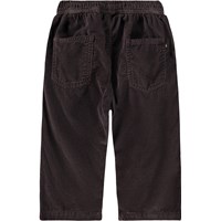 Mørkebrune bukser i baby fløjl til de mindste, fremstillet i økologisk bomuld. Bukserne har en løs pasform med for- og baglommer samt en elastisk talje, der gør dem nemme at tage af og på. Det lette og luftige design sikrer masser af bevægelsesfrihed, og ved lommen finder du et lille broderet smilende ansigt. Kombiner bukserne med en matchende skjorte for at få et fuldendt og behageligt sæt.