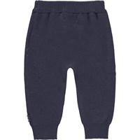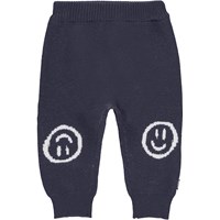 Mørkeblå strikkede babybukser med hvide smiley's på benene. Bukserne er fremstillet i bomuld og uld. Kombiner bukserne med den matchende cardigan.