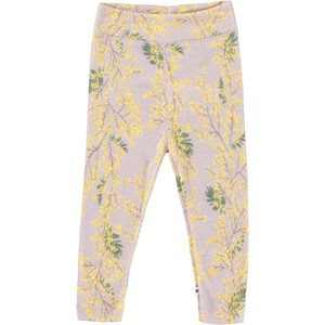 Lys lilla leggings i uld til de mindste, med allover print. På printet ses de fineste gule mimosa blomsterrænker. Disse leggings er fremstillet i 100% Merino uld. Match evt. disse leggings med blusen, Eli, i samme print for det perfekte sæt.