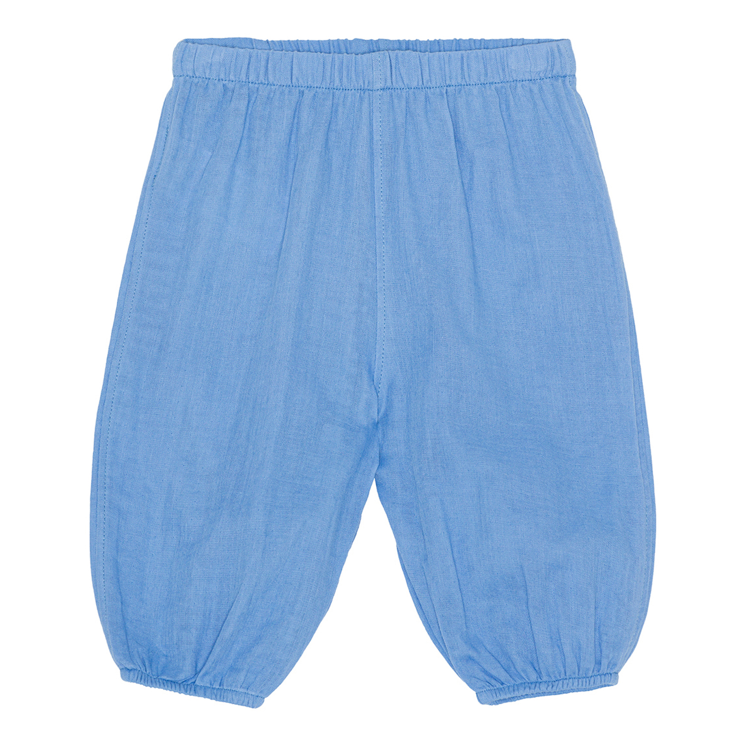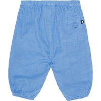 Blå bukser til de mindste i økologisk bomuld. Shortsene har en sød lille baglomme, elastik i taljen og benene, det giver en god bevægelighed samt er nemme at få af og på. En lille let buks til de varme sommerdage. Kombiner bukserne med matchende skjorte og få et lækkert let sommersæt.