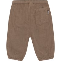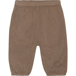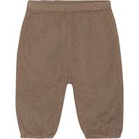 Sun er et par luftige bomulds babybukser i brun. Bukserne har en elastisk talje.