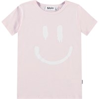 Lyserødt nattøj med korte ærmer og ben i strækbart økologisk bomuld. Sættet er todelt og består af en løs t-shirt med rund hals samt et par shorts med elastik i taljen, der gør dem behagelige at have på. Sættet har et smilende hvidt ansigt på fronten.