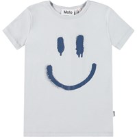 Lyseblåt nattøj med korte ærmer og ben i strækbart økologisk bomuld. Sættet er todelt og består af en løs t-shirt med rund hals samt et par shorts med elastik i taljen, der gør dem behagelige at have på. Sættet har et smilende mørkeblåt ansigt på fronten.