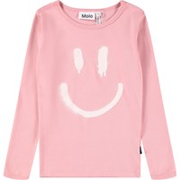 Rosa nattøjssæt i økologisk bomuld med elastisk talje og ribkant ved anklerne. Toppen har rund halsudskæring og et stort, spraymalet smil i hvidt på fronten.