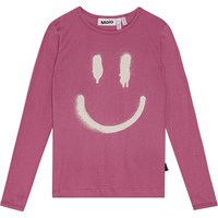 Rosa nattøjssæt i økologisk bomuld med elastisk talje og ribkant ved anklerne. Toppen har rund halsudskæring og et stort, spraymalet smil i hvidt på fronten.