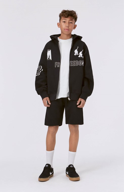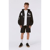 Sorte sweatshorts med hvidt logo. Disse shorts er fremstillet i en blød og behagelig bomuldsblanding, går til omkring knæet, har elastik og indvendigt bindebånd i kontrast farve i taljen, lommer i siderne, en enkelt baglomme og et regulært fit.