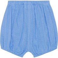 Blå bloomer shorts i økologisk bomuld. Shortsene har elastik i talken samt omkring lårene, det giver en god bevægelighed samt er nemme at få af og på. En lille shorts til de varme sommerdage.