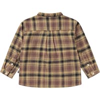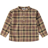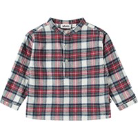 Multifarvet ternet skjorte i økologisk bomuld til de mindste. Skjorten har en kinakrave og en stolpelukning med tre hvide knapper. Den har en løs pasform, der gør den behagelig at have på og nem at komme i.
