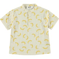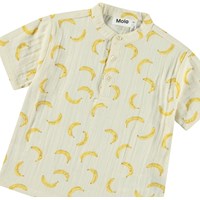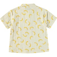 Kortærmet skjorte til de mindste i økologisk crepet bomuld. Skjorten har kinakrave og stolpelukning med tre hvide knapper og en løs pasform, der gør den behagelig at have på og nem at komme i. Skjorten er beige med print af bananer. Kombinér med de matchende bukser Serene for et komplet outfit.