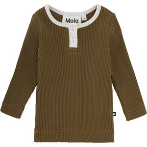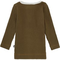 Earth er en mørkegrøn babybluse i ribbet kvalitet med knappelukning, samt hvid kant ved halsen. Kombiner blusen med matchende bukser. Certificeret af Ecocert Greenlife, certifikationsnummer 197496.