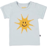 Easy er en baby t-shirt i lyseblå med print af en sol på fronten. Easy har en dobbelt knappelukning på den ene skulder, som gør det nemt at få blusen af og på.
